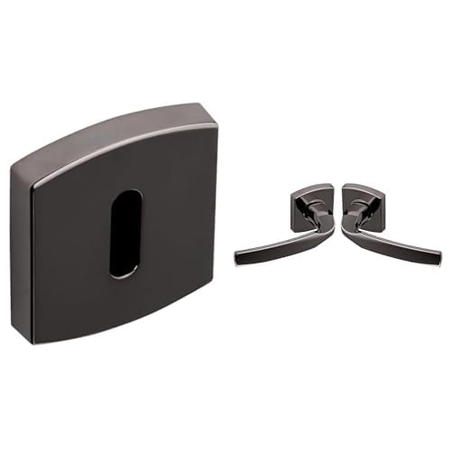 Vachette - Jeu de Rosaces 6425 Aveugle + Poignée de Porte MUZE - Béquille et Rosace Carrée Solidarisées Bec de Cane - Finition Diamant Noir - Garantie 10 Ans