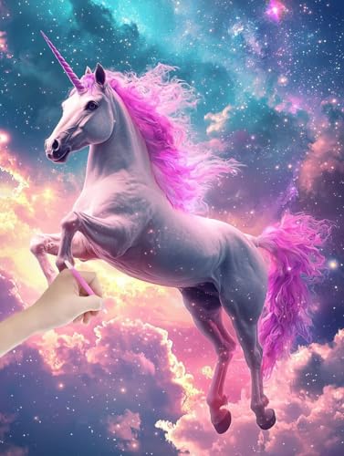 AUAUY Diamond Painting, 5D DIY Arts CréAtifs Diamond Painting avec Cadres Photo, Peinture par Numero, pour Décoration Murale D'IntéRieur (Licorne)