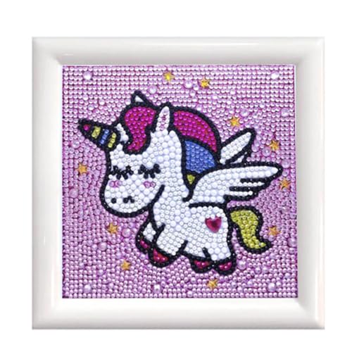 CAYUDEN Kit de Peinture de Diamants avec Cadre, 5D Licorne Diamond Painting Kit pour enfants avec Cadre en Bois de 17 cm Gem Art Diamant Kit D'art et D'artisanat Pour Enfants âgés 6 8 1012 ans