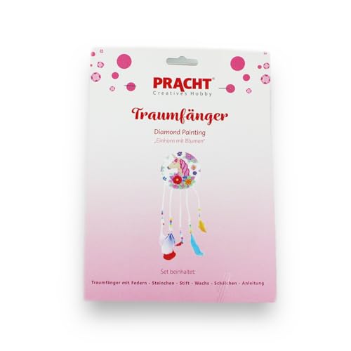 Pracht Creatives Hobby 6045-15041 Diamond Painting Attrape-rêves, licorne avec fleurs, kit de bricolage pour créer un attrape-rêves avec des pierres scintillantes, pour enfants à partir de 5 ans