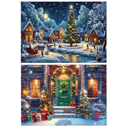 Tyanlenr 2 Pièces Diamond Painting Noël 40x30 CM, 5D DIY Peinture Diamant Noel Paysage Hiver Kit Complet pour Adulte Enfant, Diamonds Art Paintings pour Maison, Bureau, Mur Décoration