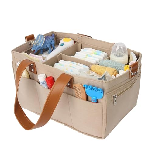 Nuyhgtr Diaper Bag, Felt Baby Storage Bag, Large Capacity Diaper Organizer, Car Nursery Organizer, Travel Diaper Tote, Baby Travel Storage Bag for Diaper, Toys, Bottles, Wipes, Books