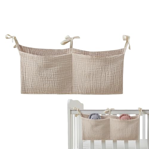 Baby Crib Pocket, Portable Crib Organizer, Bedside Diaper Storage Bag, Nursery Crib Organizer, Cotton Baby Bedding Organizer, Baby Crib Hanging Storage, Crib Organizer with Pockets, Diaper Holder for