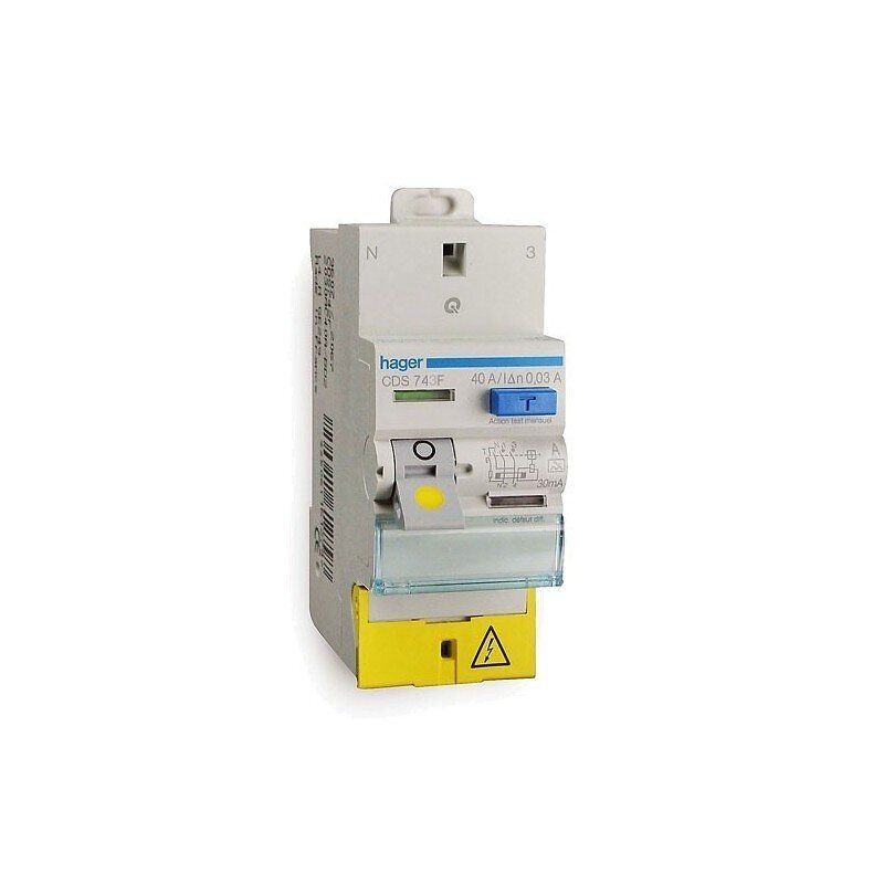interrupteur différentiel hager - 40a - 30 ma - 2 pôles - type a - auto / vis