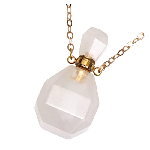 GRIRIW Pendentif de Collier en Fluorite Naturelle Blanc, Flacon de Parfum Miniaturisé avec Chaîne Métal, Bijou Suspendu pour Huiles Essentielles, Diffuseur Aromathérapie Femme,