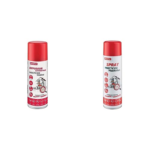 BEAPHAR - Diffuseur automatique insecticide habitat – Tue les insectes volants, rampants + Beaphar – Spray insecticide habitation – Tue les insectes volants, rampants, les œufs et larves