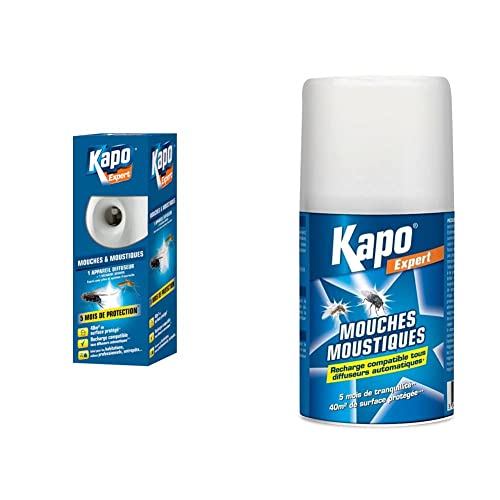 KAPO Diffuseur Automatique contre les Mouches et Moustiques - 1 Appareil Diffuseur + 1 Recharge - Idéal pour Éliminer Rapidement les Mouches & Aerosol Recharge Mouches et Moustiques - 250ML