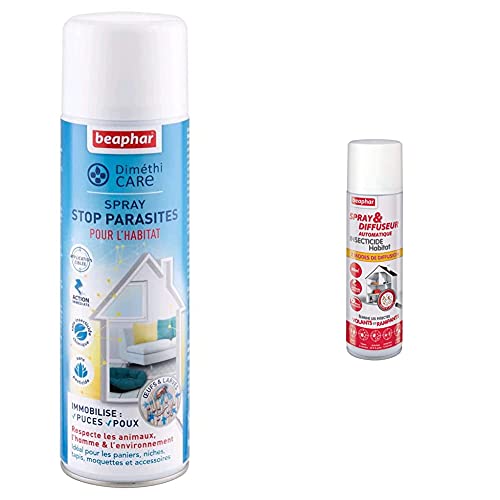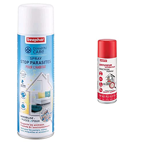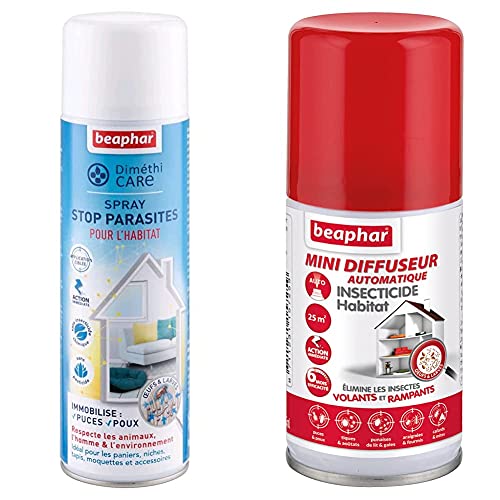 BEAPHAR – DIMETHICARE – Spray Stop parasites pour l’Habitat – 400 ML & Spray & Diffuseur Automatique Insecticide Habitat – Tue Les Insectes Volants, rampants, Les œufs et Larves – 250 ML