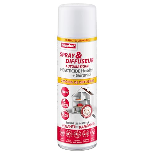 BEAPHAR – Spray & Diffuseur automatique insecticide habitat – Tue les insectes volants, rampants, les œufs et larves – Permet de traiter 160 m² – Action longue durée jusqu'à 6 mois – Flacon 500 ml