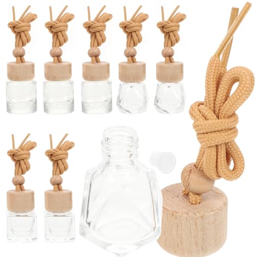 Swpeet 20Pcs 5 Tailles 5/6/7/8/10ml Diffuseur de Parfum Suspendu d'assainisseur d'air, Bouteilles de Voitures d'huile Essentielle en Verre Clair Rechargeable Vide Flacons Pendentifs de Parfum avec