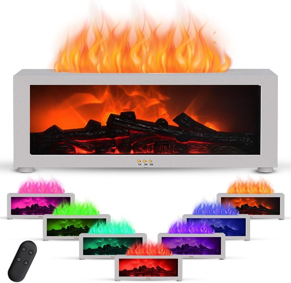 Diffuseur d'huile essentielle avec effet flamme, 7 lumières colorées, arrêt automatique sans eau, pour aromathérapie et humidification, convient pour chambre et bureau, minuterie 6H/8H/10H, 246 x 84