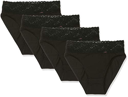 Dim Culotte Femme Taille Haute en Coton Stretch et Dentelle EcoDIM Ventre Plat x1, Noir, XS