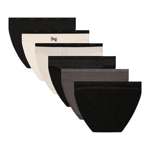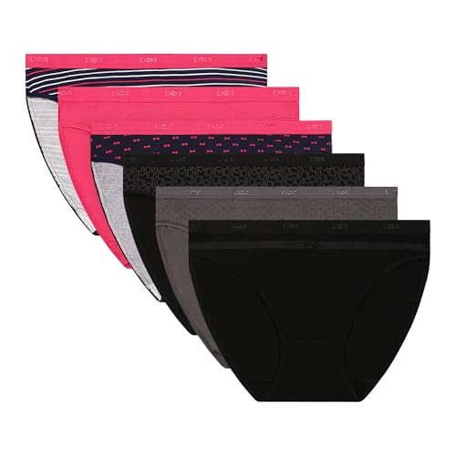 Dim Culotte Femme Les Pockets Coton Stretch x6, Lot Pretty Rose/Lot Noir Logo, L