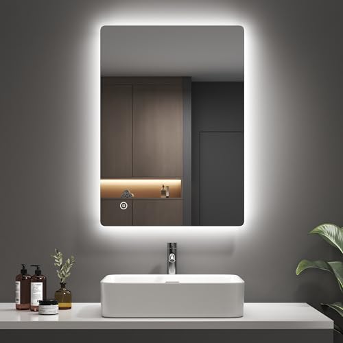 EMKE Miroir de Salle de Bain avec Éclairage, 50x70 cm – Miroir LED avec 3 Couleurs de Lumière Dimmer, Fonction Anti-Buée, Interrupteur Tactile, Arrêt Automatique après 3 Heures,Mémoire