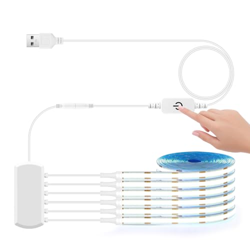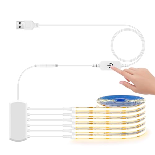LRGBST 5V USB COB LED Bande, 3M chaud blanc Dimmable LED Bande Lumière avec Touch et main balayage Dimmer Interrupteur pour les panneaux acoustiques montre l'éclairage de l'armoire d'étagère