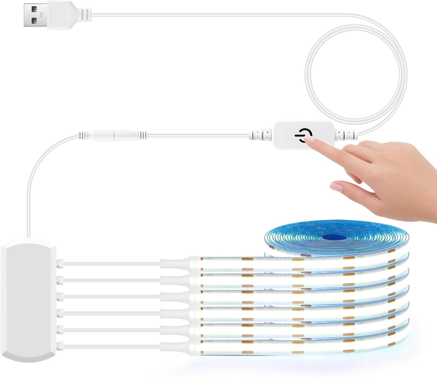 LRGBST 6 pcs 2M Bande de LED COB du cabinet blanc de,Bande LED COB Dimmable 5V USB avec interrupteur de Dimmer tactile pour les vitrines de sous l'éclairage du cabinet