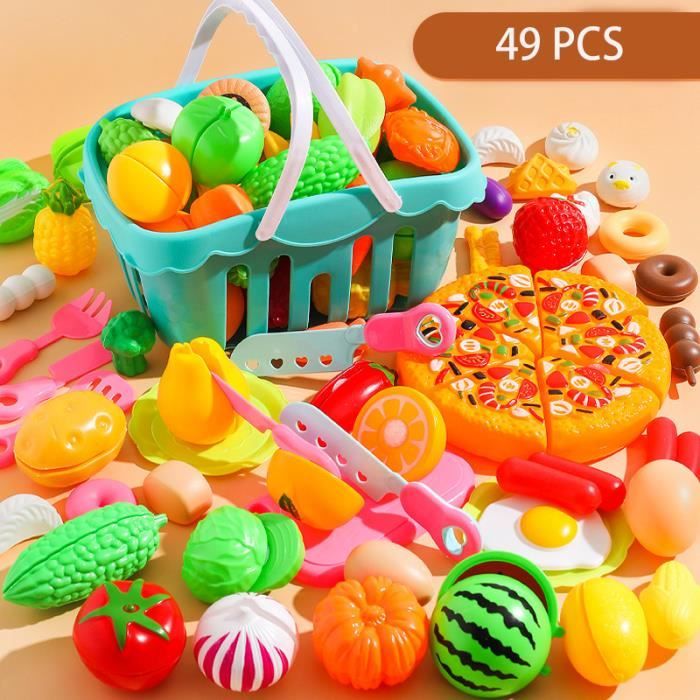49pcs Jouet Cuisine Dinette Enfant Aliment Fruits et Légumes Jouets à Couper Accessoires Jeu de Cuis