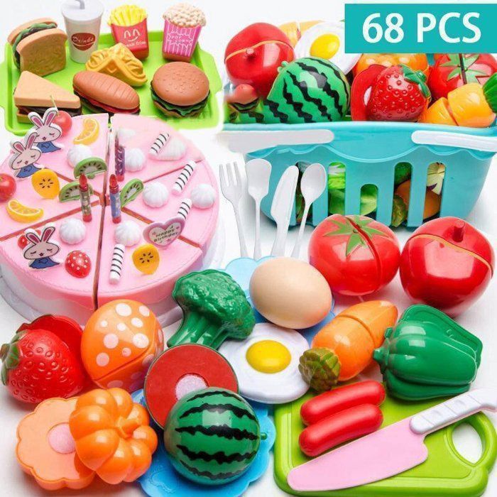 34pcs Jouet Cuisine Dinette Enfant Aliment Fruits et Légumes Jouets à Couper Accessoires Jeu de Cuis