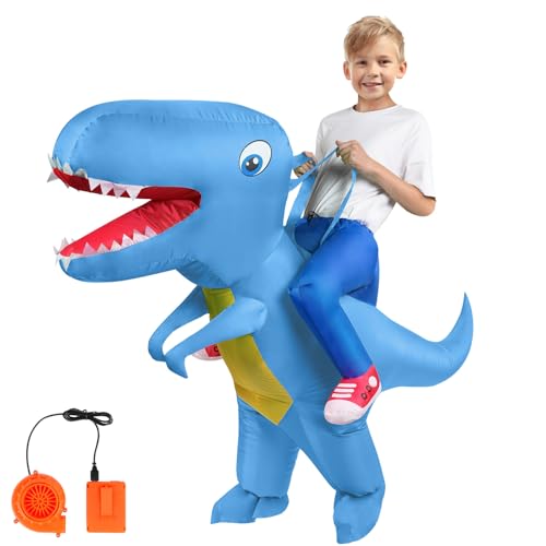 AOOWU Déguisement Gonflable Dinosaure, Déguisement Dinosaure Gonflable Enfant, Costume Gonflable Raptor, Dinosaur Mascot Party Costume Fancy Dress Cosplay Outfit Enfant Costume fête d'Halloween,Bleu