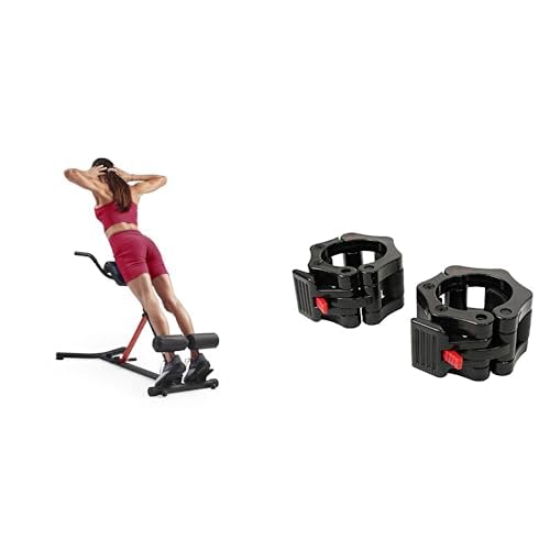 Sunny Health and Fitness Unisex's Station Hyperextension Roman Chair with Dip Station, Black + Locking Collar Clamps with Quick Release for Olympic Barbells for Pro Training