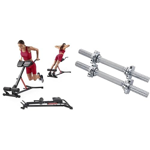 Sunny Health and Fitness Unisex's Station Hyperextension Roman Chair with Dip Station, Black + 35.5 cm Threaded Chrome Dumbbell Bar