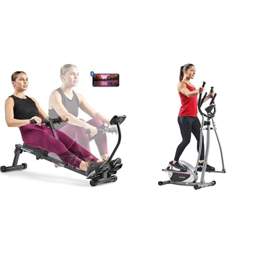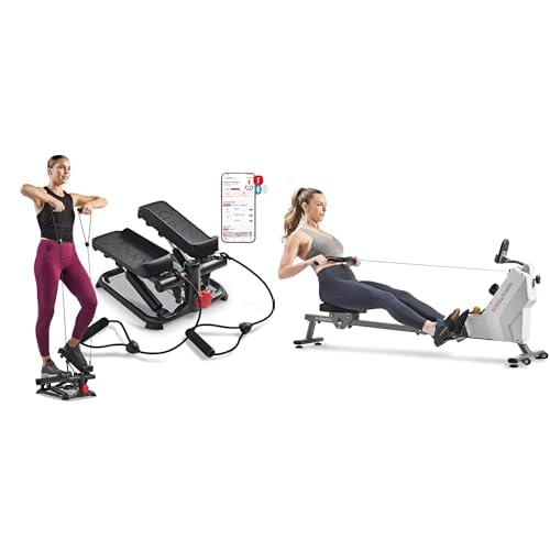Sunny Health & Fitness Smart Compact Adjustable Rowing Machine, 12 Levels Resistance + Unisex's Station-SF-BH620062 Hyperextension Roman Chair with Dip Station, Black, One Size