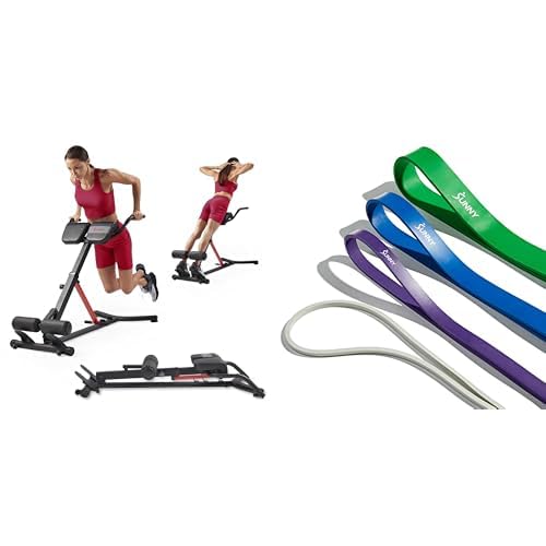 Sunny Health and Fitness Unisex's Station Hyperextension Roman Chair with Dip Station, Black + Versatile Resistance Bands (Single or Combination Set) - 4.5-35kg Combo