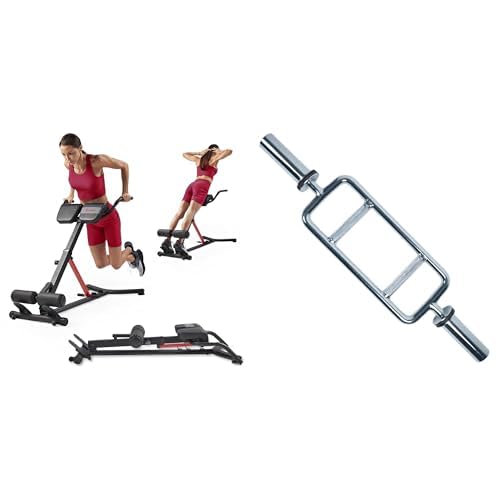 Sunny Health and Fitness Unisex's Station Hyperextension Roman Chair with Dip Station, Black + 86 cm Olympic Triceps Bar with Ring Collars, Olympic Weight for Weightlifting and Bodybuilding