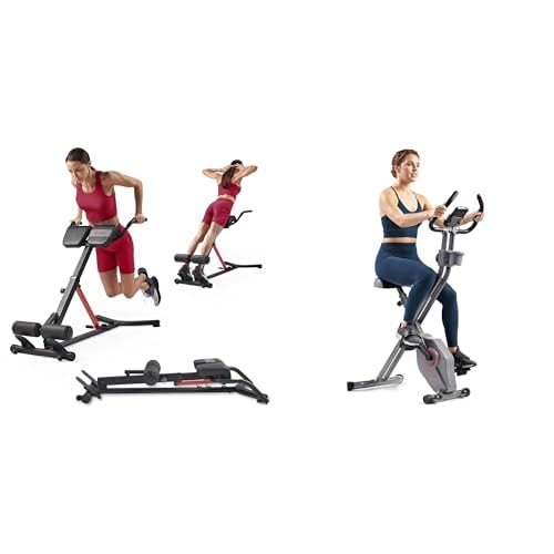Sunny Health and Fitness Unisex's Station Hyperextension Roman Chair with Dip Station, Black + Smart Folding X-Bike, Portable Compact Exercise Bike, 14-Level Magnetic Resistance