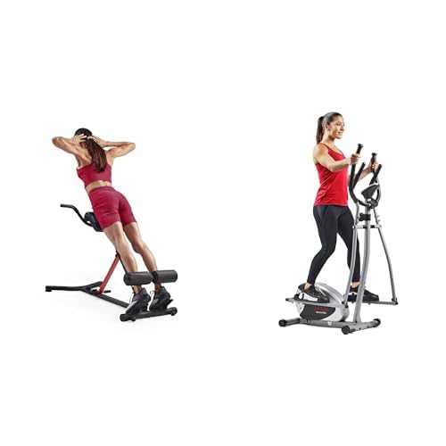Sunny Health and Fitness Unisex's Station Hyperextension Roman Chair with Dip Station, Black + Legacy Stepping Elliptical Machine, Ultra- Quiet Magnetic Belt Drive