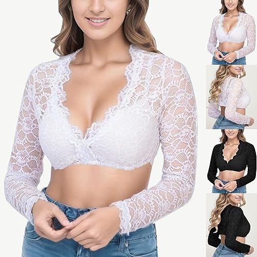 Chemisier Dirndl pour femme en dentelle, chemisier à manches longues pour femme - Chemisier Dirndl en dentelle blanc/noir - Col de poitrine - Manches longues - Élégant et sexy - Costume traditionnel