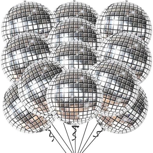 KatchOn, Silver Disco Ball Balloons - 22 Inch, Pack of 12 | Shiny Disco Ball for Disco Party Decorations | 4D Sphere Disco Balloons for Disco Bachelorette Party Decorations | Silver Birthday Decor