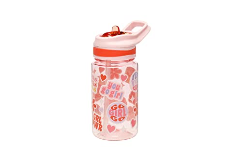 Pearhead Girl Power Kids Water Bottle for School, Spill Proof, Tritan Flip Straw 16oz, BPA Free and Dishwasher Safe, Travel and Sports Tumbler, School Supplies, Pink
