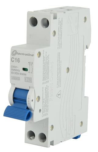 Electraline 87002 Disjoncteur 16A, courbe C (protection optimale contre les surintensités et les courts-circuits), 1P+N, 4.5kA, 240V, certifié CE, KEMA-KEUR et UKCA