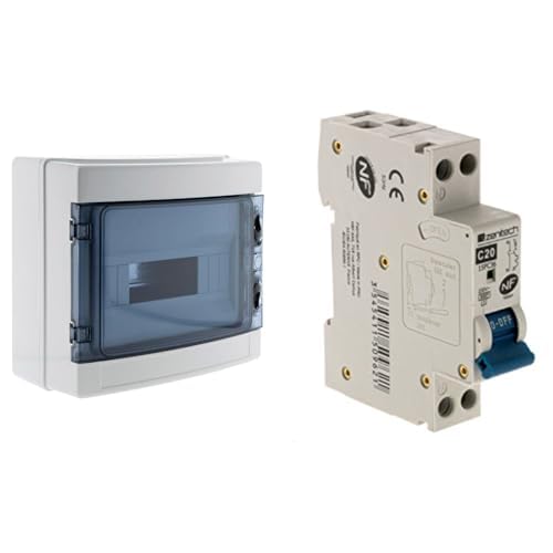 Zenitech - Coffret Électrique Étanche IP65 8 Modules avec Accessoires de Montage + Disjoncteur PH/N 20A NF pour Protection des Circuits Cumulus et Chauffe-Eau