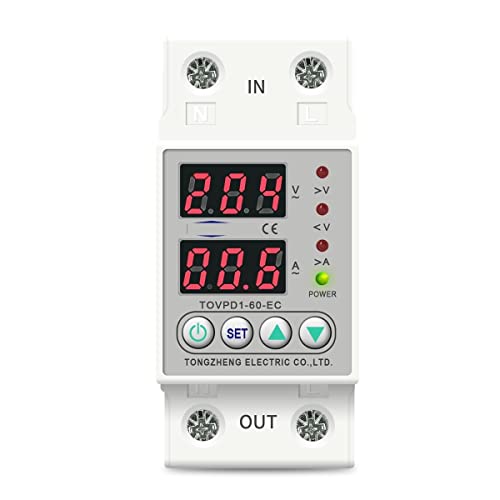 Disjoncteur 60A Din Rail 230V Réglable Sur et Sous Tension Dispositif de Protection Protecteur Relais Moniteur Limite de Courant TOMZN TOVPD1-63-EC Interrupteur automatique (Size : Onecolor)