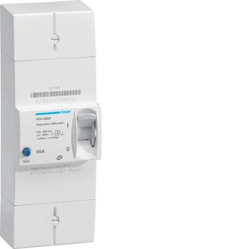 Hager HDA260SF Disjoncteur de branchement différentiel 2P 60A 500mA selectif