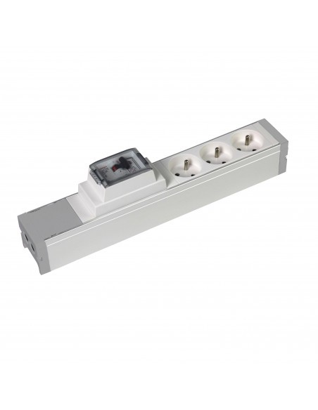 Bloc nourrice équipé de 3 prises 2P+T avec 1 disjoncteur différentiel Ph+N 16A 3