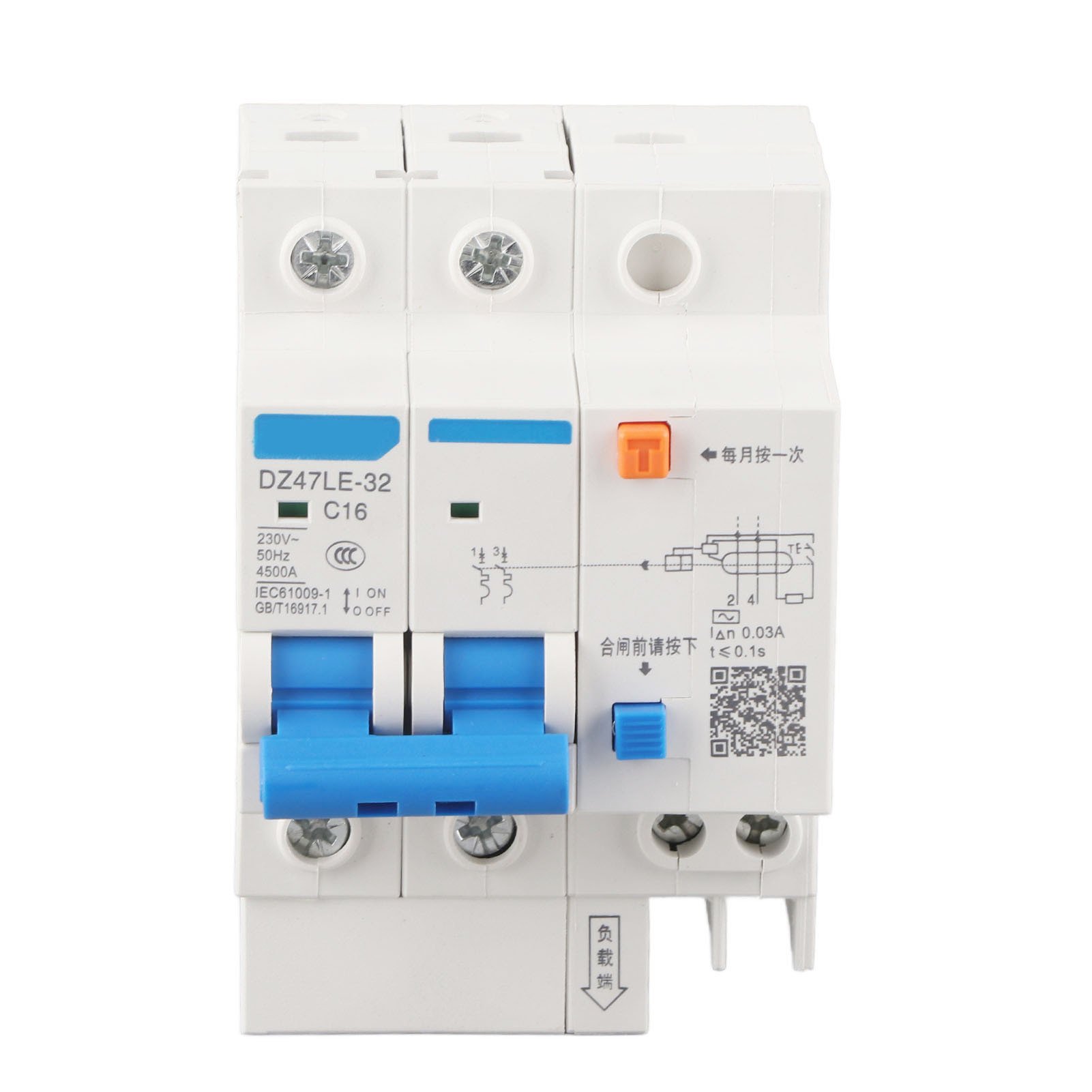 WANGZEYU Disjoncteur Disjoncteur différentiel 18MM 10A 16A 20A 25A 32A 1P+N 6KA avec Protection Contre Les surintensités et Les fuites 30mA Disjoncteurs(16a)