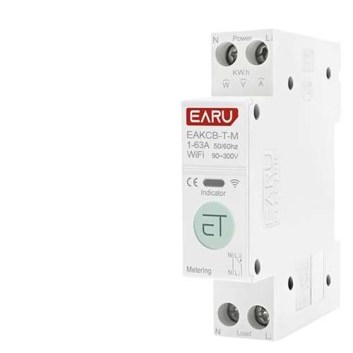 Fymlok Disjoncteur,Disjoncteur Différentiel Disjoncteur Intelligent WiFi MCB Minuterie 1P+N 63A Puissance Énergie KWh Tension Courant Compteur Protecteur Télécommande vocale Interrupteur