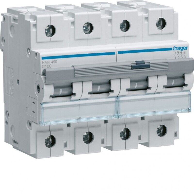 :HAGER Disjoncteur 4P 30kA courbe C - 100A 6 modules (HMK490)