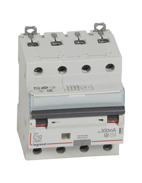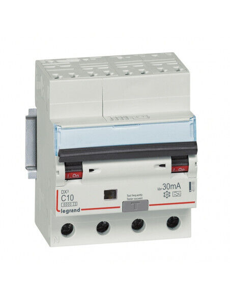 DISJONCTEUR DIFFERENTIEL DX³ TETRAPOLAIRE 10A TYPE AC 30MA 10KA COURBE C LEGRAND