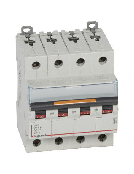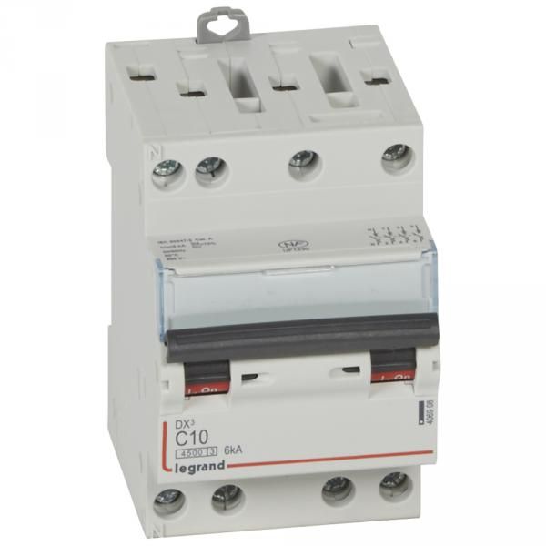 DISJONCTEUR DX3 VIS/VIS 4 POLES 400V 10A 25KA COURBE C 4 MODULES LEGRAND 409793
