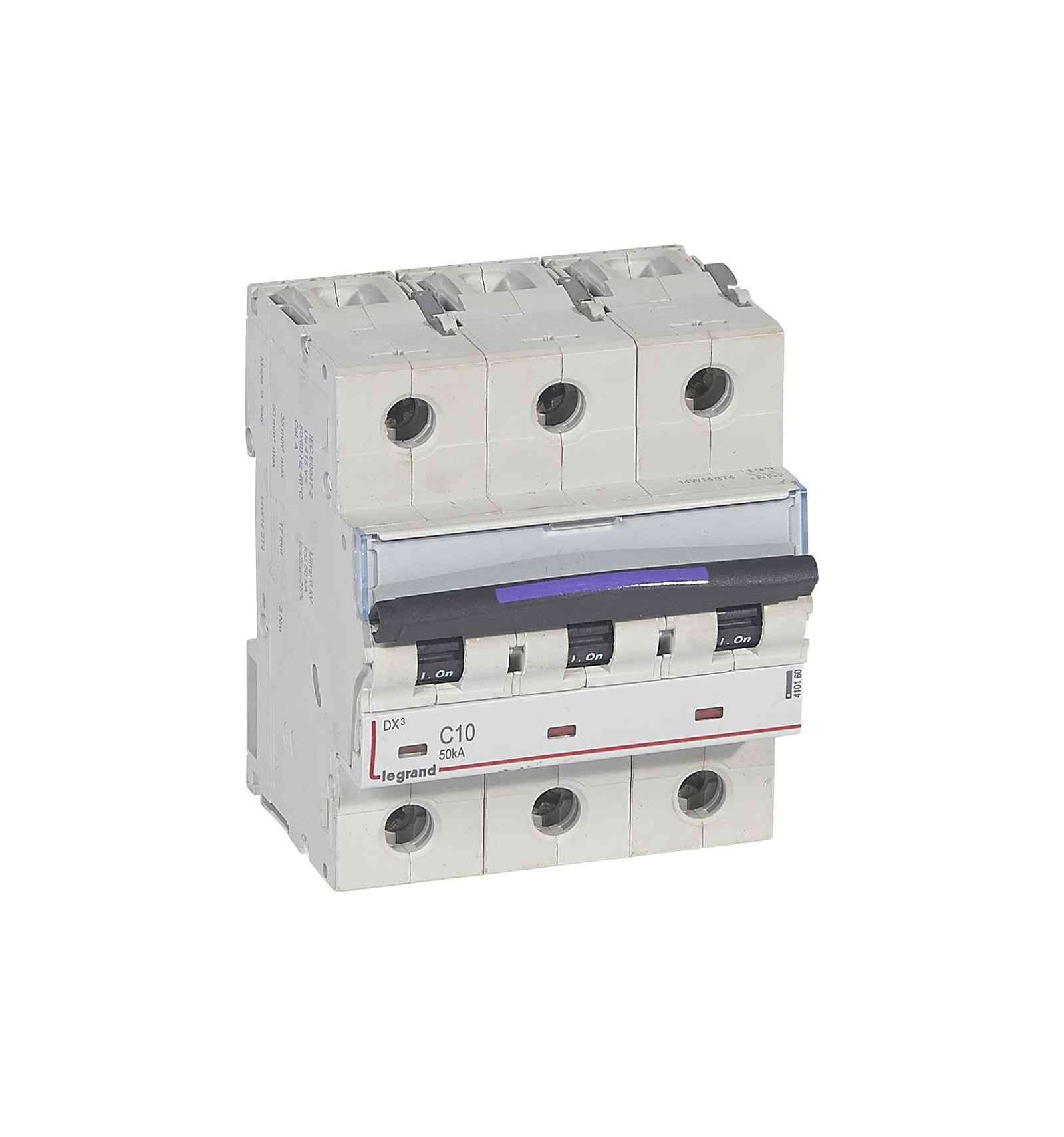 Disjoncteur DX3 Tétrapolaire Courbe D 10A 10KA LEGRAND 408116