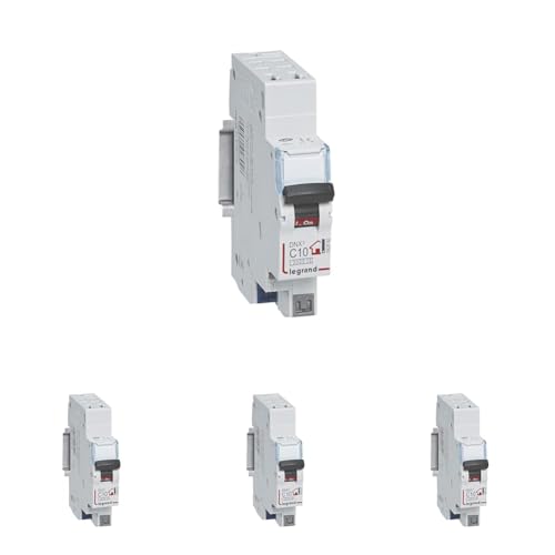 LEGRAND - Disjoncteur Phase + Neutre 230V DNX³ - Pouvoir de Coupure 3000A - 10A Courbe C - Bornes automatiques - 1 Module - Fabriqué En France (Lot de 4)
