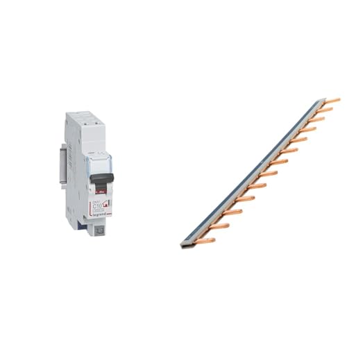 LEGRAND - Disjoncteur Phase + Neutre 230V DNX³ - Pouvoir de Coupure 3000A - 10A Courbe C - Bornes automatiques - 1 Module - Fabriqué En France & Peigne 13 modules noir/blanc longueur 220mm