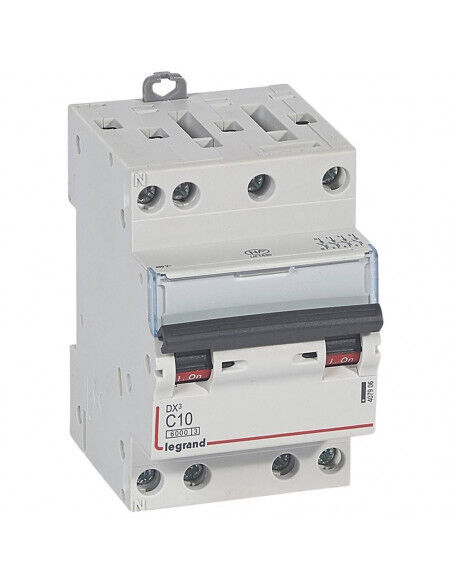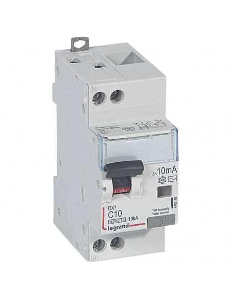 LEGRAND - Disjoncteur Phase + Neutre 230V DNX³ - Pouvoir de Coupure 3000A - 10A Courbe C - Bornes automatiques - 1 Module - Fabriqué En France