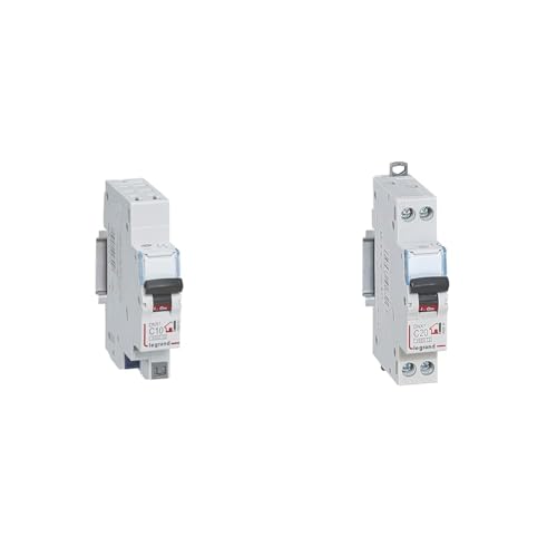 LEGRAND - Disjoncteur Phase + Neutre 230V DNX³ - Pouvoir de Coupure 3000A - 10A Courbe C & Disjoncteur Phase + Neutre - 20A - bornes à vis - 1 module