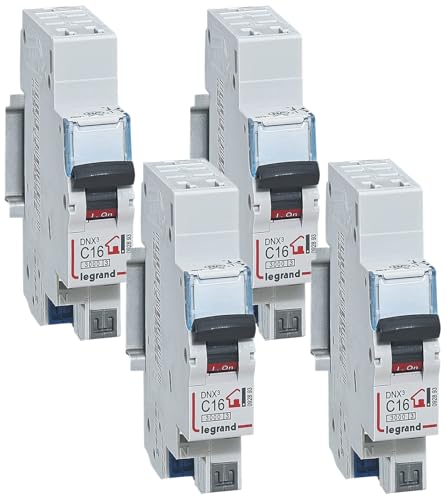 LEGRAND - Disjoncteur Phase + Neutre 230V DNX³ - Pouvoir de Coupure 3000A - 16A Courbe C - Bornes à Vis - 1 Module - Fabriqué En France (Lot de 4)