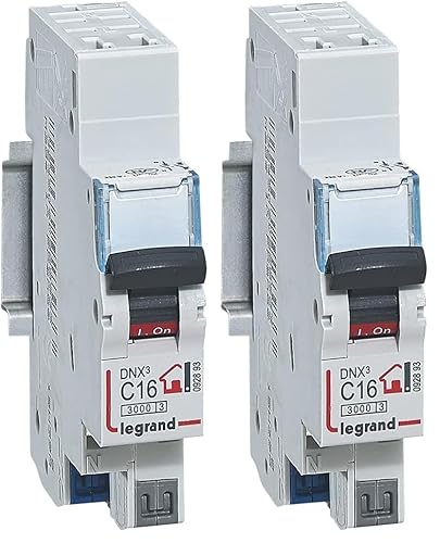 LEGRAND - Disjoncteur Phase + Neutre 230V DNX³ - Pouvoir de Coupure 3000A - 16A Courbe C - Bornes automatiques - 1 Module - Fabriqué En France (Lot de 2)